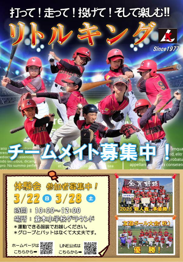 リトルキングでは365日いつでも新入団員を募集しています!